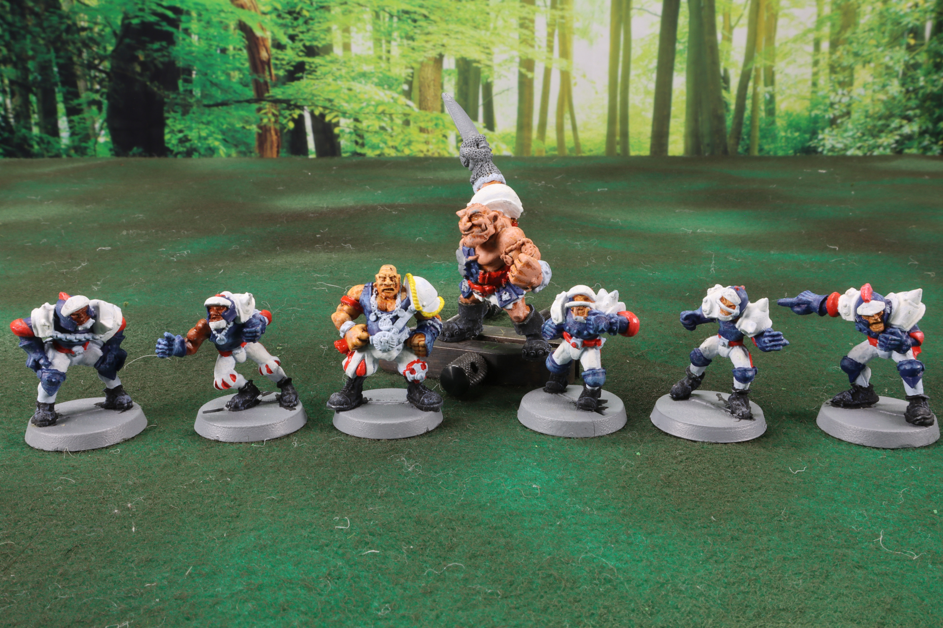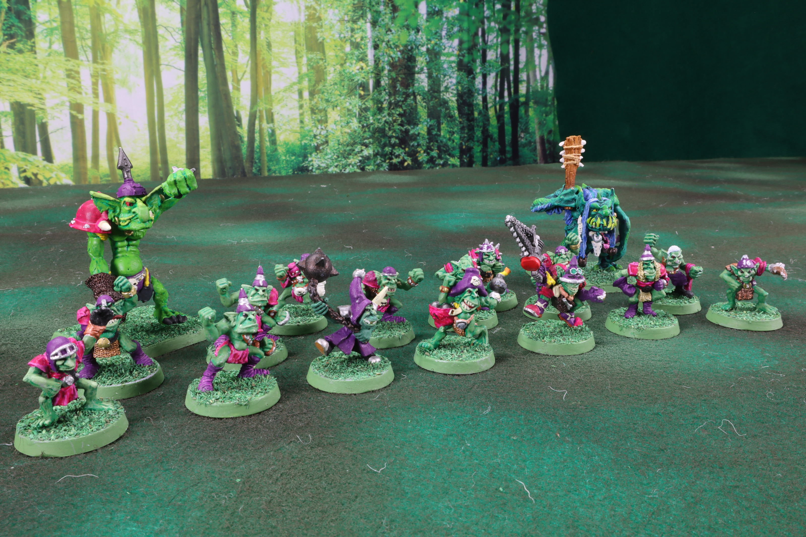 This article describes 28mm fantasy miniatures from Games Workshop. The minis were made for the game Blood Bowl which was released in the 1980s. Since then, the game Blood Bowl has undergone three editions with many accompanying miniatures which are still sold today. The miniatures shown here were made by their Citadel division.