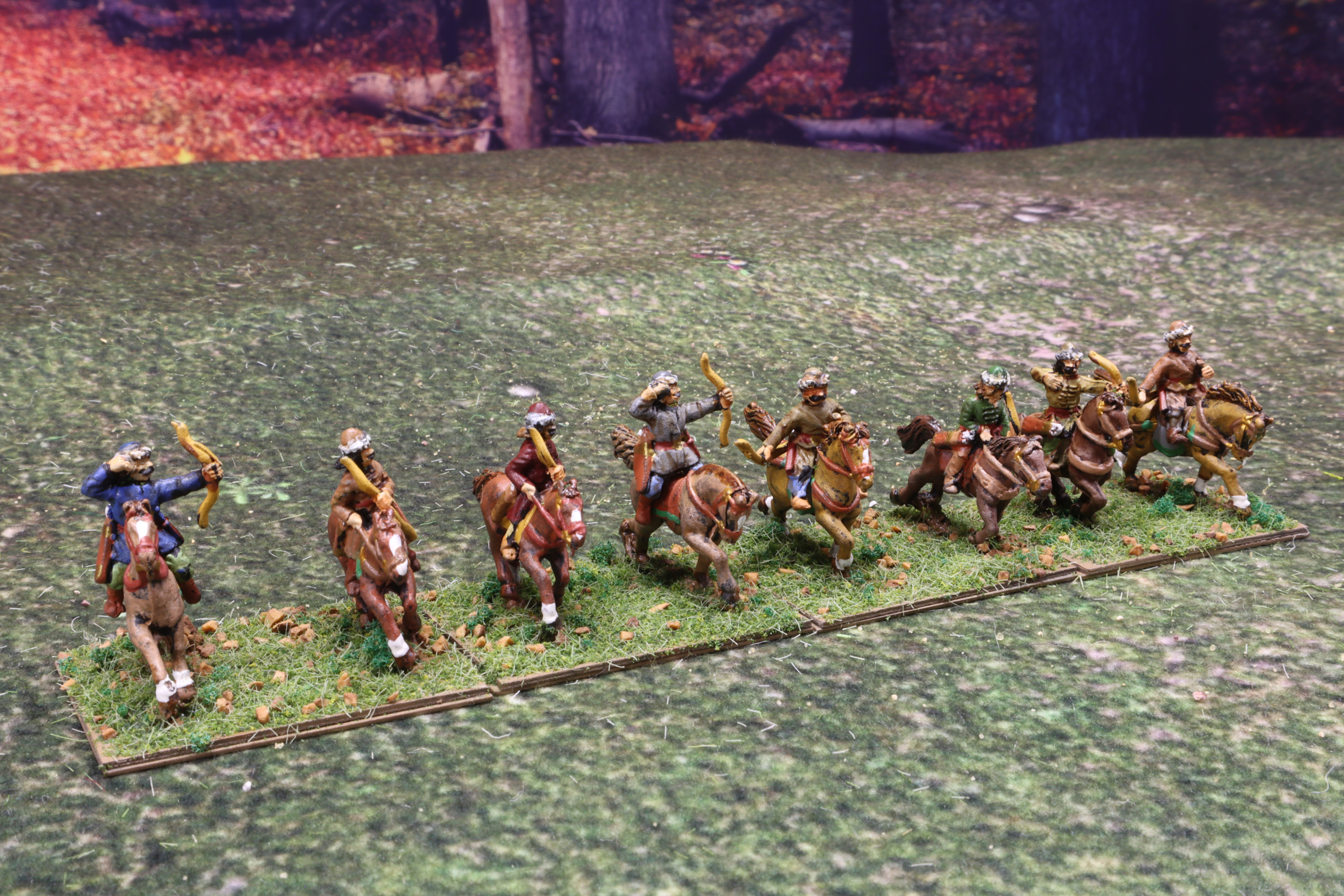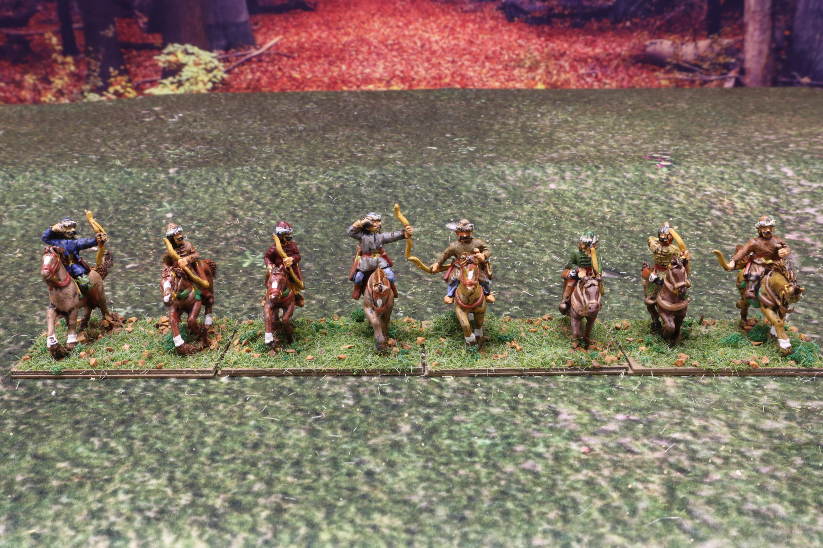 The Bulgars were Turkic Steppe Nomads, so they were very good with horses and bows. These Essex miniatures are excellently scuplted and in various poses. The horses have varied poses also and are well adorned with blankets, reins, and saddles. I love the Hunnic/Mongolian fur rimmed helmets.