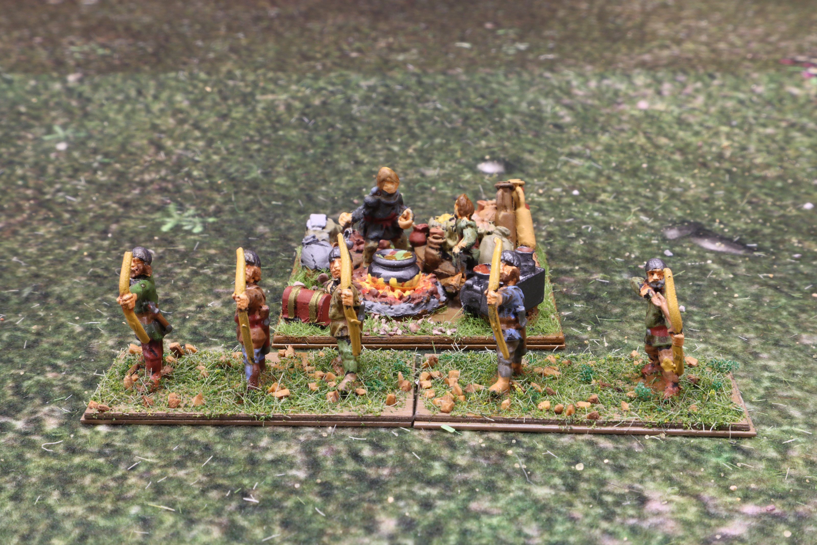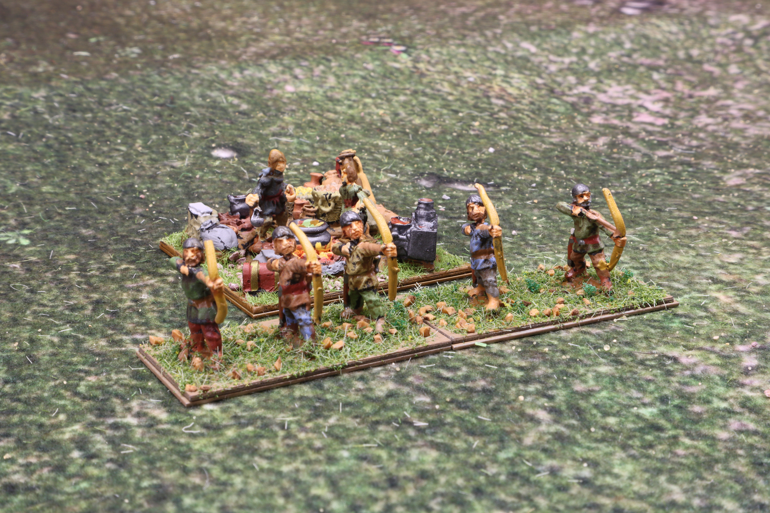 The archers are Essex figures. The three figure base would be a bow team. The two figure element are psiloi (a fase loose formation, made for skirmishing).