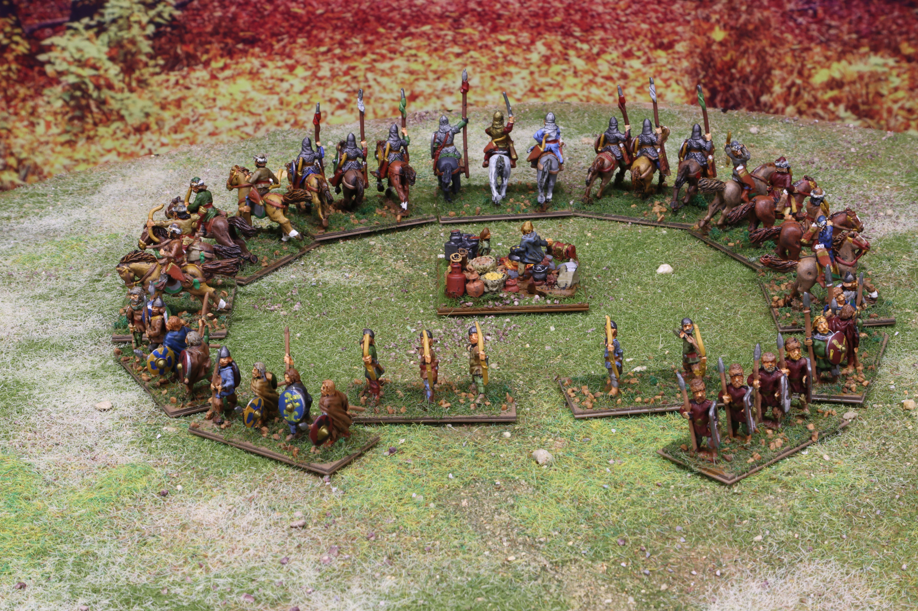 Essex has provided enough figures for a complete army with the option for psiloi or bowmen unit. The quality of the sculpts and the castings are excellent. Unlike Baueda which provide multiple camps with their DBA Army sets, Essex do not provide them. The camp shown in the center comes from Baueda.