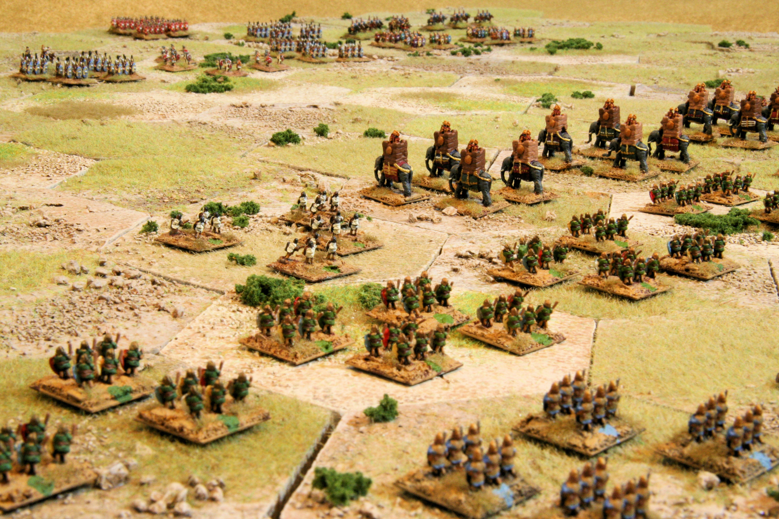 This photo shows the inital attack of the Carthaginian army. The Carthaginian army advances but the battle lines have not joined yet. The Carthaginian auxilia and elephants are ready to attack the Romans.