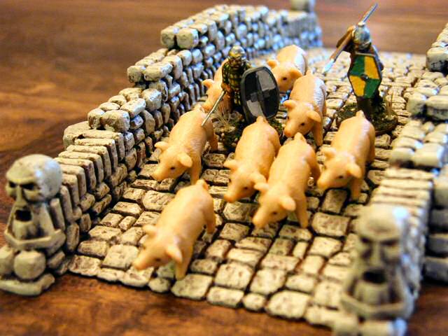 Here we see the juicy porkers nearly back home. In "Pig Warriors", these dudes have scored an impressive 80 porcine points. If they slaughter a few Vikings and Saxons along the way, that's all the better.