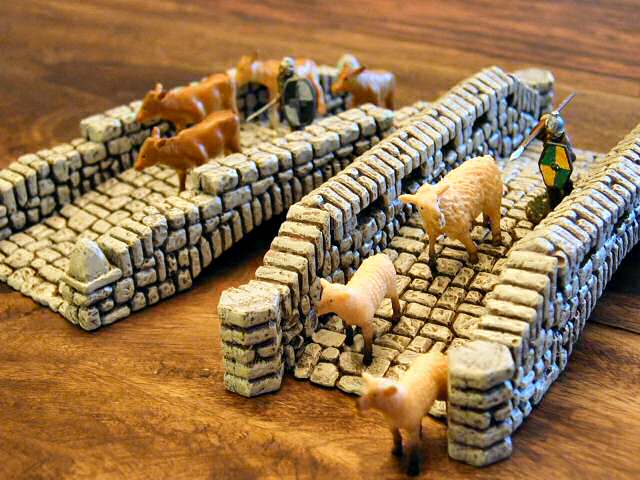 The farther bridge with the four calves consists of the same arch span. This one has a slightly different side wall. Here I used the fancy pillar cap on the ends to give it a bit of decoration.