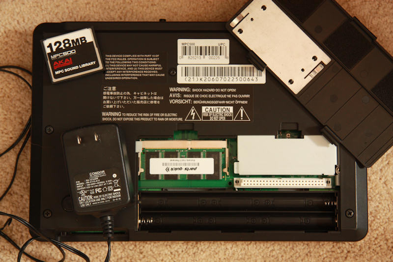 Here's the back opened up. Batteries are not included. However, you do get the 128 MB internal RAM. It's not original Akai memory, but it works, and just like any computer, memory is memory! The compact flash memory card is the 128 MB that comes with the unit.