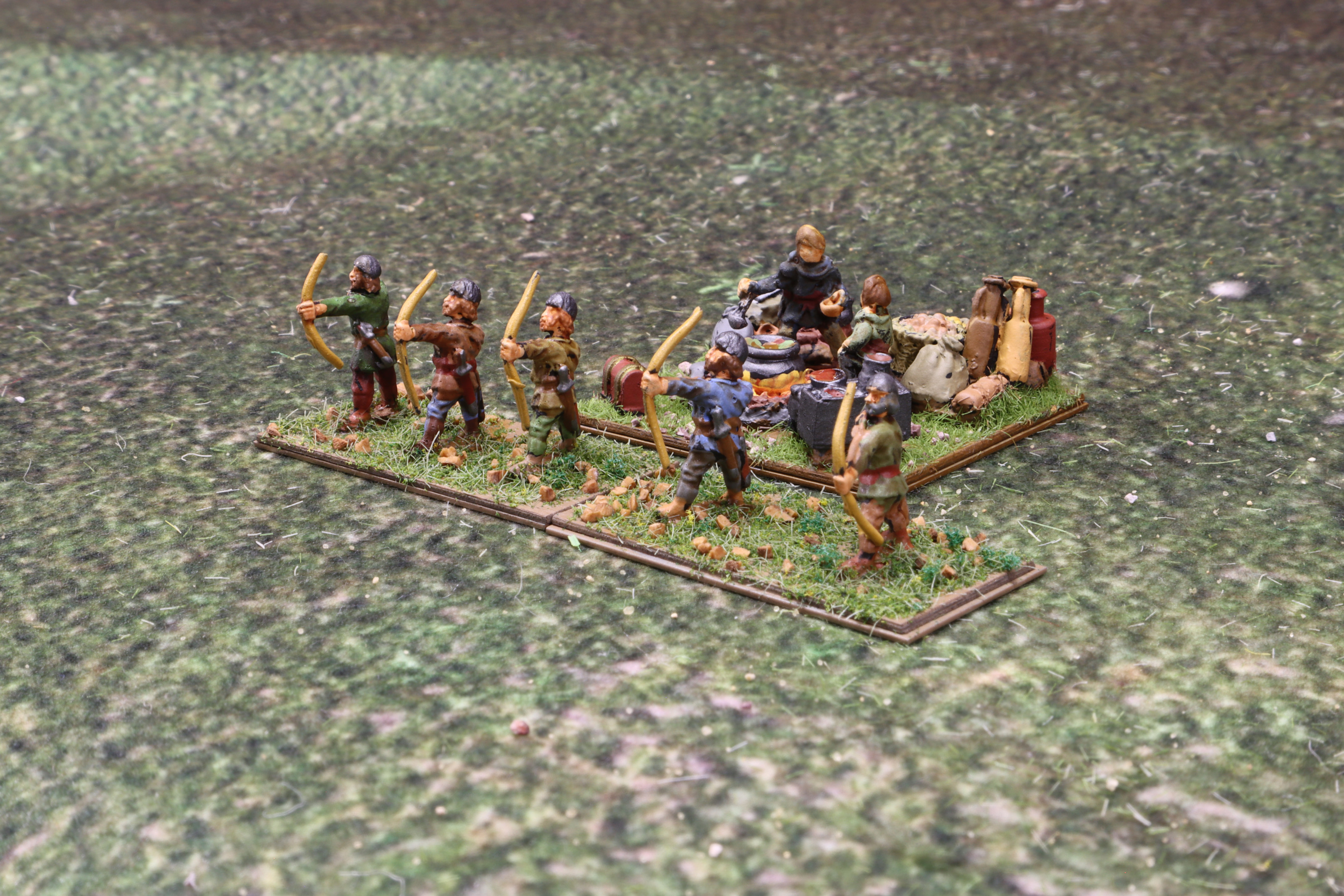 The archers are Essex figures. The three figure base would be a bow team. The two figure element are psiloi (a fase loose formation, made for skirmishing).