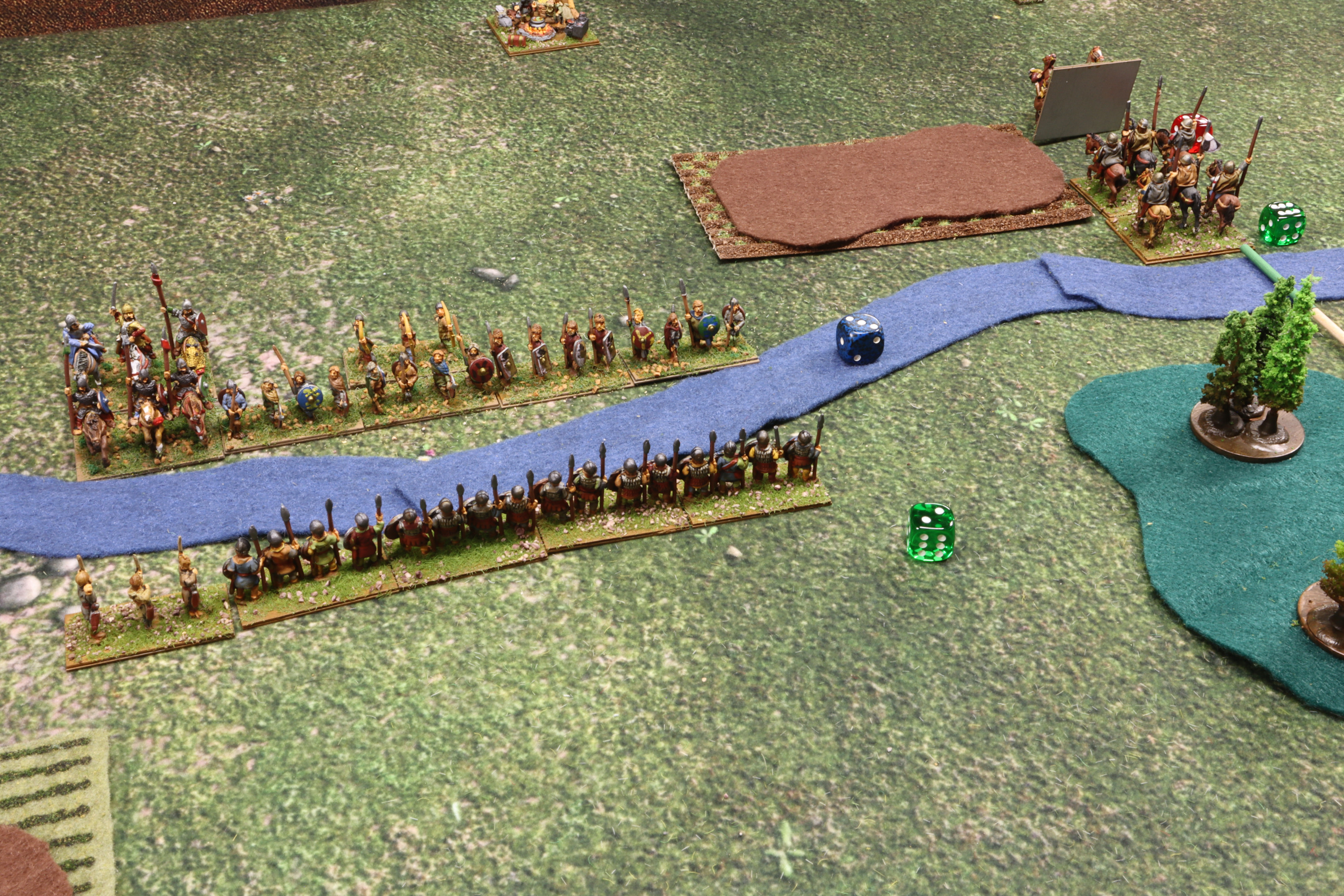 I did play many DBA games in game stores about 20 years ago, but this is my first DBA game since, and I am quite rusty. I did try to follow the rules, but despite the short rule book, I find the organization and clarity of the rules very difficult. If I missed rule or made an improper play, please let me know and help me improve for the next game.