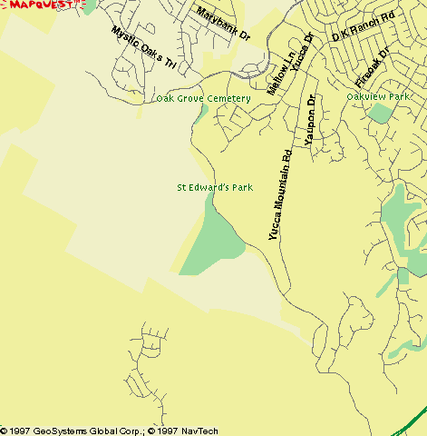 Enter Edward's Park, west 2 miles on old Spicewood Springs Road to St. Edward's Park on left, or