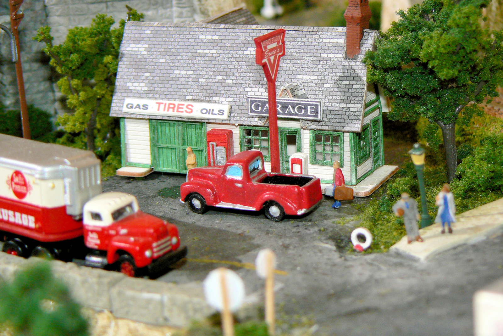 Here is Ernie's Service Station.The model is a laser cut basswood kit from