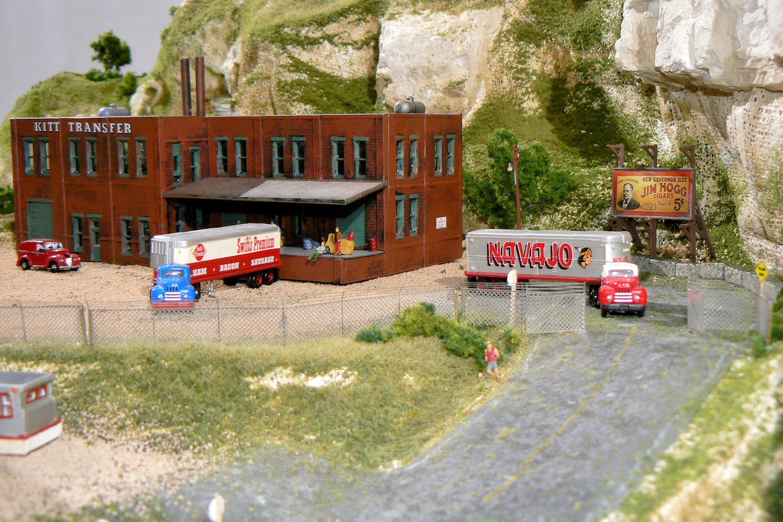drilled a few holes in the scenery base and inserted the supportposts with a drop of glue.The "Jim Hogg" bill board