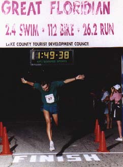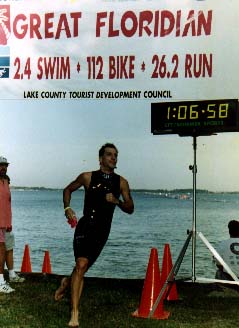 |  | Triathlon Photo Gallery This page is a collection of images from Dan Becker's glorious triathlon career. Click on the image to get a larger view. The Great Floridian, Clermont Florida, 1997 A slow but satisfying day. The Great Floridian, Clermont Florida, 1996 An epic struggle between Adam Gruman and Dan Becker The Great Floridian, Clermont Florida, 1994 A hot and windy year. The Great Floridian, Clermont Florida, 1993 No wetsuits allowed this year. I finish this race within 58 seconds of my personal record. Panama City Gulf Coast Tri, 1991 This was the year Jim Bell hammered his way to Hawaii. This was the year that I hammered Jim Bell with tequila. The Vineman Ironman, 1990 This was the ironman race that started it all for me. Penrod's Miami Beach, 1990 This race was partially on the sand. My goofy glasses phase. A race with Adam Gruman. St. Anthony's, 1987, 1988, 1990 Was Adam racing these years? Miami USTS, 1988 A windy, rainy day. I flatted and brought the tire home around my neck. I had a fun race with Bob Sharrar this year.